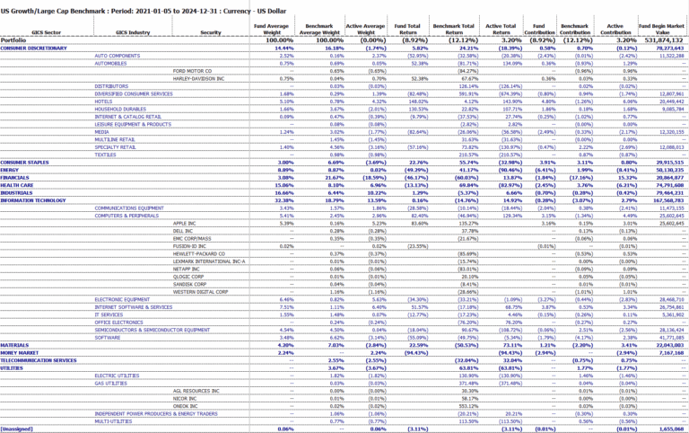 Analyst Attribution is a specialized version of our proprietary Enhanced Brinson decision attribution model, which was developed to address the industry challenge of tracking and reporting upon the relative effectiveness of analyst ratings. Clients are able to use analyst ratings and have those ratings reflected in the security level weights in “paper portfolios.” Attribution may be run relative to the assigned benchmark, and/or referencing the real world portfolio. The result is an accurate framework to assess the job performance of research analysts, which may be used to assist in performance reviews, compensation incentives, etc.
