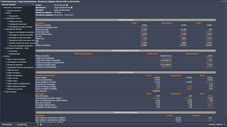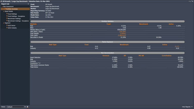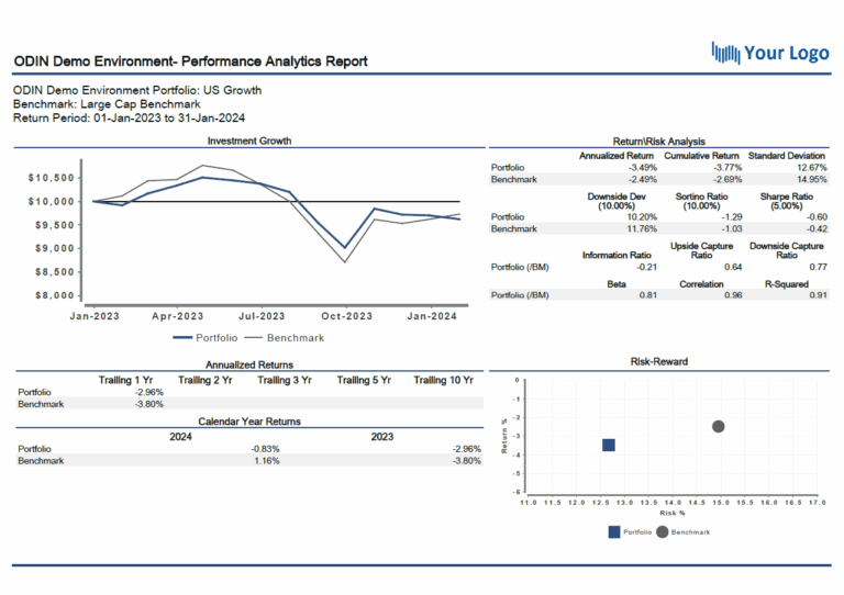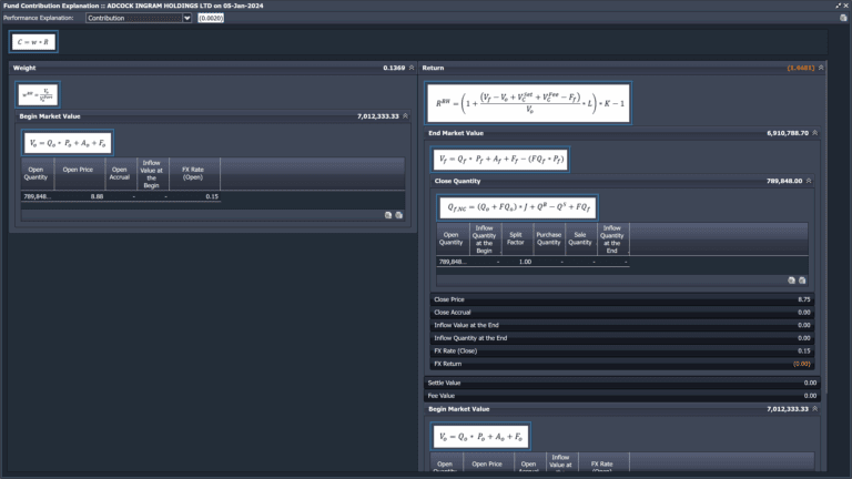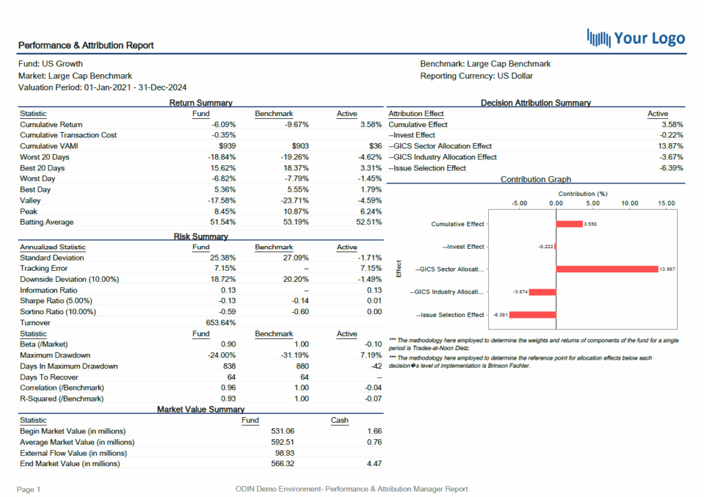 ODIN Attribution provides clients with the flexibility to select from a suite of best of breed models to meet their varied needs. Our proprietary Enhanced Brinson Fachler model empowers investment professionals to receive analytics which are based on how they actually make their investment decisions. If there is consistently applied logic and data to support it, our attribution engine can incorporate it into a decision tree – on the fly. Have a quant scoring method with multiple steps? Each step can be part of a decision tree and determine the alpha and risk generate by each. In combination with our ODIN Performance product, ODIN Attribution can handle any asset type and strategy. ODIN Attribution also provides the flexibility to select more traditional Brinson models, including a classic 2 step Brinson Beebower. Foreign exchange impact may be treated in a variety of ways, including decomposition or Karnosky Singer. Whether it be multi-asset or a traditional bottoms-up stock picking strategy, ODIN Attribution offers a way to provide economically meaningful analytics.