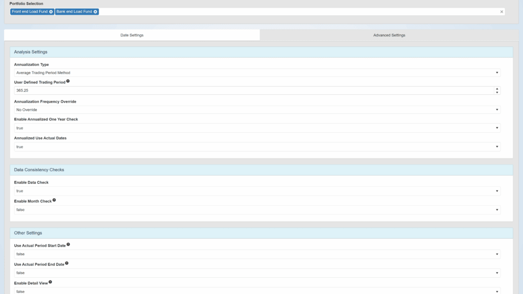 Generation of multiple return types including Gross and Net Return for multiple class types. Supported class types include: Class A (Front End Load), Class B (Back End Load), Market/Closed End Fund, Class C (Back End Load) SYNTHETIC and Class C (Back End Load) Convertible. Offers an optional detail view for debugging results.