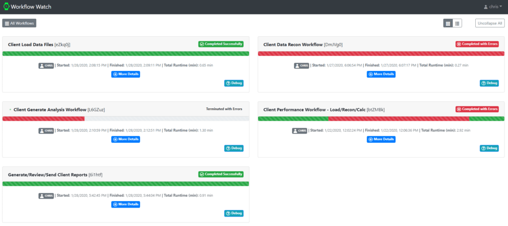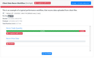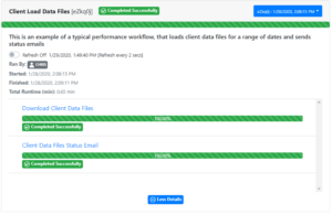 Workflows can be designed with the necessary web service enabled “supporting” Opturo Processes that provide the user with the ability to monitor, investigate source of errors, fix data issues and then rerun Workflow all through the same interface.